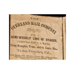 As a complement to the lecture, the museum will display an 1859 employee notebook issued by the Butterfield Overland Mail Co. The notebook contains a foldout map, instructions to employees regarding personal behavior and a travel schedule.