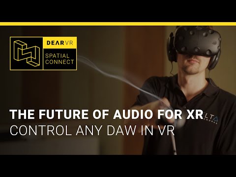dearVR SPATIAL CONNECT controls the digital audio workstation, including the 3D audio processing plug-in dearVR PRO. During the mixing process, the developer or audio engineer wears VR glasses, and uses the VR controller and attached virtual ray to position the audio sources, set their level and control solo/mute and automated modes for the sound sources. https://youtu.be/ln61FNG3bB4