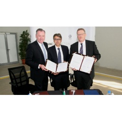 Board of Management Member for Production and Logistics Dr Josef Baumert and Board of Management Member for Sales and Marketing Heinz-Jürgen Löw have now signed an agreement in Relizane with Mourad Oulmi, CEO of SOVAC S.P.A, on production of the Amarok by the joint venture company SOVAC Production S.P.A.