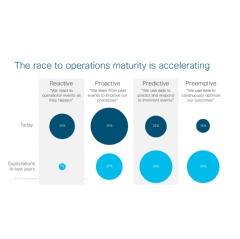 Today, Cisco announced the launch of its new IT Operations Readiness Index revealing how data is transforming the way businesses operate their IT. The Index surveyed more than 1,500 senior IT leaders from across the globe to understand where organizations are on their IT operations transformation journey, revealing a four-step model for IT operations maturity, focused on how organizations handle events they face.