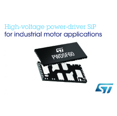 Geneva, November 5, 2018 -- STMicroelectronics’ PWD5F60 high-density power driver is the second in a new series of power-driver systems-in-package addressing high-voltage brushed DC and single-phase brushless motor applications. It integrates a 600V/3.5A single-phase MOSFET bridge with gate drivers, bootstrap diodes, protection features, and two comparators in a 15mm x 7mm outline. The thermally efficient system-in-package occupies 60% less board real-estate than discrete components, while boosting reliability and simplifying design and assembly.