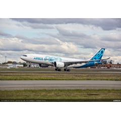 The first A330-800 development aircraft to fly, MSN1888, has landed at Toulouse-Blagnac, France at 2:35pm local time after successfully completing its first flight which lasted four hours and four minutes. The aircraft, the second member of the A330neo Family, is powered by the latest technology Rolls-Royce Trent 7000 turbofans.