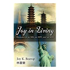 Be inspired by Joy K. Boerop’s story of faith. Find the calling to preach the Gospel. Order a copy of Joy in Living: A Memoir of an MK, an MW and an MM today through Amazon https://www.amazon.com/Joy-Living-Memoir-MK-MW/dp/1414115695 and Barnes & Noble https://www.barnesandnoble.com/w/joy-in-living-joy-k-boerop/1119890503?ean=9781632324092 . A copy of her book can also be ordered through her website www.joyinliving.webs.com and you will receive a hand autographed copy with her Chinese name.