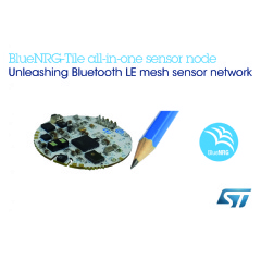 - BlueNRG-Tile is 2.5cm diameter all-in-one battery-operated motion, environmental, acoustic and distance-ranging sensor node