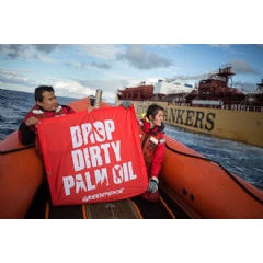 Greenpeace prevents tanker loaded with dirty palm oil products from mooring in Rotterdam harbour
