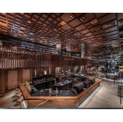 At its core, Starbucks Reserve Roastery New York is a working coffee roastery, where every day Starbucks Master Roasters, who have trained for years in the craft of coffee roasting, will be small-batch roasting Starbucks rarest single-origin coffees and blends called Starbucks Reserve. Those coffees then get served fresh at the Roastery or shipped to select Starbucks stores around the world. That functional purpose, as well as the history of industry and manufacturing in the meatpacking district, is reflected in the design of the space.