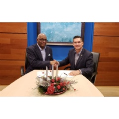 Image caption: The agreement was signed by Mr Luis Oduber, CEO of WEB. Aruba N.V. (right) and Mr Rodney George, Vice President, Caribbean, Wärtsilä Energy Solutions