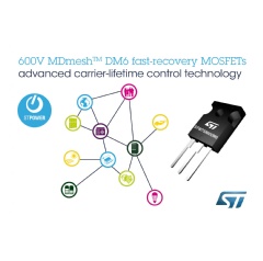 Geneva, January 21, 2019 -- STMicroelectronics’ MDmesh™ DM6 600V MOSFETs contain a fast-recovery body diode to bring the performance advantages of the Company’s latest super-junction technology to full- and half-bridge topologies, Zero-Voltage Switching (ZVS) phase-shift converters, and applications and topologies generally that need a robust diode to handle dynamic dV/dt.