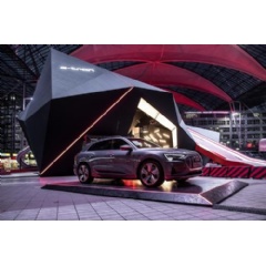 Audi is preparing a very special showcase for the e-tron prior to its official launch on the German market: The all-electric Audi has landed at Munich Airport in a multi-storey meteorite that covers a 630-square-meter (6,781.3 sq ft) footprint. Until mid-March, visitors and passengers can experience the new model for themselves along with its technology, its service ecosystem and other exciting future projects from Audi in the MAC Forum between Terminal 1 and Terminal 2.