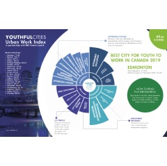 Today, YouthfulCities launches its inaugural Urban Work Index, the first of its kind to look specifically at urban work in Canada. The Index, which was funded by RBC Future Launch, ranks 21 Canadian cities based on 48 urban work indicators, and found Edmonton to be the top-ranked city in the country. Edmonton scored 713.86 points out of a possible 1,310 available points.
