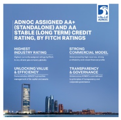 Fitch also assigned a Long-Term Issuer Default Rating (IDR) of AA with a Stable Outlook to ADNOC, in line with the sovereign rating of Abu Dhabi, reflecting Fitch’s assessment of the strong linkages between ADNOC and the Abu Dhabi government.
