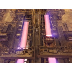 The two-strand continuous slab caster S6 originally started up in 1996 and was equipped with a straight twin casting mold. The machine radius is around 9 meters and the metallurgical length is around 44.7 meters. It produces slabs with a thickness of 250 millimeters with widths ranging from 750 to 1,880 millimeters. Grades cast include low, ultra-low, medium and high carbon steels, peritectic, micro alloyed and high silicon steels.