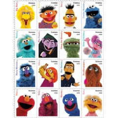The Postal Service honors Sesame Street as one of the most influential and beloved children’s television shows. For the last 50 years, it has provided educational programming and entertainment for generations of children throughout the country and around the world. The stamp art features photographs of 16 Muppets from Sesame Street — Big Bird, Ernie, Bert, Cookie Monster, Rosita, The Count, Oscar the Grouch, Abby Cadabby, Herry Monster, Julia, Guy Smiley, Snuffleupagus, Elmo, Telly, Grover and Zoe. Art Director Derry Noyes designed the stamps.