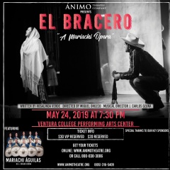 ÁNIMO Theatre Company will be staging “El Bracero – A Mariachi Opera” at Ventura College on May 24, 2019 at 7:30 p.m.