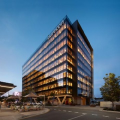 An impressive example of the latest trends in engineered wood construction is afforded by Australia’s highest wooden office building. The ten-story structure in King Street, Brisbane was completed and handed over to its occupants in autumn 2018. Nine stories rise above the partially recessed ground floor, on a row of V supports of glued laminated timber. The load-bearing structure of the ten-story building consists of glued laminated timber supports and beams, combined with walls and ceilings of cross-laminated timber elements. The latter are jointed with Loctite Purbond adhesives to create high-performance load-bearing elements.