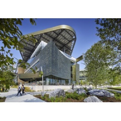 Other prominent projects include PIER 17 at South Street Seaport in New York City, which is finished with PPG Duranar powder coating to protect the building against its challenging salt-laden marine environment. The Emma and Georgina Bloomberg Center on Roosevelt Island, also in New York City, incorporates a perforated rainscreen painted with color-shifting PPG Duranar VARI-COOL™ coatings.