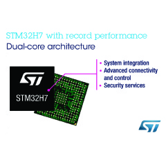 Geneva, June 4, 2019 -- The new STM32H7* microcontrollers (MCU) from STMicroelectronics are the industry’s highest-performing Arm® Cortex®-M general-purpose MCUs, combining dual-core punch with power-saving features and enhanced cyber protection.