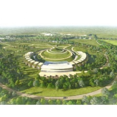 There will be a small cluster of buildings, including a cafe, at the entrance to the site, from where visitors can walk to the museum. This is designed as a crescent-shaped collection of buildings, nestled amongst green parkland. Specially designed roads allow for "exercising" cars from the collection, giving visitors an immersive experience.