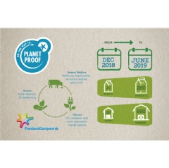 Continuous improvementFrieslandCampina wants to lead with sustainability. Therefore it focuses on milk flows that contribute to this, including the On the way to PlanetProof certified milk flow. The dairy farmers have been working on making their farms more sustainable for many years. For this FrieslandCampina developed a sustainability programme, which encourages members to gradually make their farms more sustainable. The programme provides on-line insight into the sustainability results at the farm and also rewards these. For a number of dairy farmers of FrieslandCampina it was a relatively small step to meet the high demands that PlanetProof makes in the areas of animals, nature and climate. For