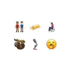 Many additional emoji categories are getting exciting updates with a new smiley face for yawning, a one-piece swimsuit, new food items including a waffle, falafel, butter and garlic, and new animals like the sloth, flamingo, orangutan and skunk.
