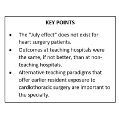 Medical residencies starting during summer months has no effect on the quality of treatment in hospital operating rooms. Cardiac surgery patients are managed by an experienced multidisciplinary team, not incoming residents