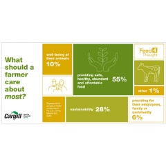 Three-quarters of Feed4Thought respondents thought technologically advanced farming was a good thing. But that’s not exactly how they see farmers today. “Technologically savvy” was one of the terms least associated with farmers. Contrast this with the approach of long-term Cargill customer, Coldstream Farms in Washington state, U.S., a dairy operation where innovation helps do everything from reducing feed loss to minimizing lameness to turning manure into drinkable water for cows and chemical-free fertilizer.
