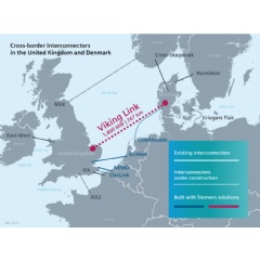 Siemens has been awarded a contract to deliver two converter stations for the first high-voltage direct-current (HVDC) link between Great Britain and Denmark. Viking Link will enable the exchange of electricity up to 1,400 megawatts (MW) to provide increased power-supply reliability and security to consumers in both countries. By allowing transmission to flow in both directions, Viking Link will support the integration of renewable energy sources into the power grid. The interconnector is being jointly developed by National Grid Ventures (Great Britain) and Energinet (Denmark) via National Grid Viking Link Ltd. and Energinet Eltransmission A/S. Viking Link is scheduled to begin commercial operation at the end of 2023.