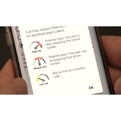 If a customer receives a known spam or nuisance call, they will see "Potential Spam" label instead of a name on the incoming call screen. This is essentially a warning of a potentially unwanted call, and they have the option to turn on blocking for these types of calls.