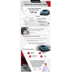“The Taycan mastered its Triple Endurance Run superbly. First, our electric sports car demonstrated the reproducibility of its performance as part of a strenuous test involving 26 successive acceleration runs from zero to 200 km/h. Then it completed 3,425 kilometres within 24 hours in Nardò without any issues and now the record at the Nürburgring-Nordschleife,” remarks Stefan Weckbach, Vice President Product Line Taycan. “Numerous factors contribute to this performance and the efficiency of the powertrain, also at high speeds. These include the chassis systems that react within a fraction of a second as well as the outstanding aerodynamics.”