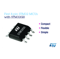 Geneva, September 19, 2019 -- STM32 microcontrollers (MCU) from STMicroelectronics are now available in an 8-pin package, enabling simple embedded projects to leverage 32-bit performance and flexibility in a compact and cost-effective outline.