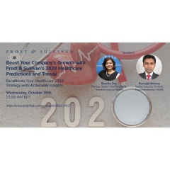 Frost & Sullivan invites you to register for our highly anticipated annual webinar: “Boost Your Company’s Growth with Frost & Sullivan’s 2020 Healthcare Predictions and Trends,” on October 30, 2019, from 11:00 AM to 12:00 PM Eastern Daylight Time. Join Transformational Health experts Reenita Das, Partner and Senior Vice President, and Kamaljit Behera, Senior Industry Analyst, to learn about trends, growth opportunities, and challenges to shape your healthcare strategy for 2020.