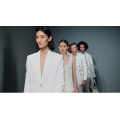 Models showcased the collection on a circular catwalk, walking alongside projections of themselves some 3 meters high. A bespoke “BOSS loves Shanghai” logo outside the building gave an early indication of the key accent color in the collection, acid lime, which was also reflected in the lighting throughout the event spaces.