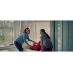 The campaign features three different families in unique spots. The first two center around the iconic red bow itself, with a father and son’s playful banter as they team up to carry the big red bow as if it were a piece of furniture, the bow falling from closets, and the bow too big for the garage freezer. Meanwhile, a mother and daughter sneak around behind dad’s back, attempt to stuff the bow behind curtains and under cupboards, and even hide the bow in plain sight in the rafters over the dining room table.