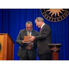 Lonnie G. Bunch III, founding director of the Smithsonian’s National Museum of African American History and Culture, was installed as the 14th Secretary of the Smithsonian Institution during a ceremony held on Nov. 1, at the Arts and Industries Building on the National Mall. The Hon. John G. Roberts, Jr., Chief Justice of the United States and Chancellor of the Smithsonian, presided over the ceremony and presented Bunch with a ceremonial brass key that once opened a massive oak door of the Smithsonian Castle.