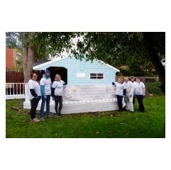 More than 15 PPG volunteers painted the summer house’s exterior in a color palette of Brilliant White and Kingston Aqua. The colors were chosen in consideration of residents and visitors who are visually impaired, elderly or have dementia to allow them to better navigate their way around buildings. The volunteers also replanted the care home’s gardens and painted the decking area so the residents could better enjoy the grounds.