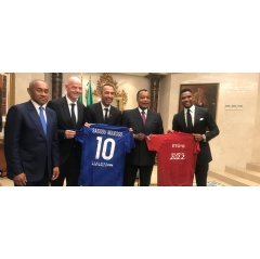 Infantino, who was accompanied by a delegation including CAF President and FIFA Vice President Ahmad, FIFA Secretary General and General Delegate for Africa Fatma Samoura, FIFA Legend and Special Advisor to CAF President Samuel Eto’o, FIFA Legend and CEO of the FIFA Foundation Youri Djorkaeff and FIFA Acting Deputy Secretary General (Football) Mattias Grafström, met with the Congolese Minister for Sports and Physical Education Hugues Ngouélondélé, who was empowered by the President of the Republic of Congo to bestow honours upon the FIFA and CAF Presidents.