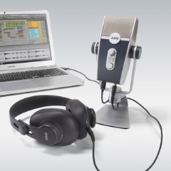 The new AKG Podcaster Essentials bundle includes the Lyra USB microphone, K371 headphones, Ableton Live 10 Lite software, and a 4-part Berklee Online recording class