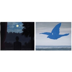 Leading a group of seven works by René Magritte, A la rencontre du plaisir (Towards Pleasure) combines several of the artist’s most iconic motifs into a single, evocative image, creating an elegant summation of the poetic imagination which fuelled his unique form of Surrealism.
