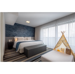 The hotel boasts 139 suite-style rooms outfitted with kitchenettes that include a microwave, refrigerator and coffee facilities, along with spacious work desks and free Wi-Fi. For an upgraded stay, guests can reserve a Business Class room with a balcony overlooking the scenic views of downtown São Paulo. Guests can enjoy a variety of amenities including an indoor pool, fitness center, sauna, access to laundry services and valet parking.
