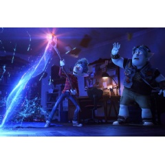 According to effects supervisor Vincent Serritella, the effects team ultimately turned two-dimensional graphics and shapes into “light objects,” then created a three-dimensional, volumetric, glowing atmosphere around them—something “new for Pixar.” Conveying magic onscreen was a surprisingly complicated process. “It’s an abstract concept. We had to personify something that is supposed to be invisible,” he says. “When we went too young with the look of magic, it felt out of place. Like, if we had added pixie dust, it wouldn’t fit in a fantasy world with two teenage boys. And if the magic looked too realistic, it wouldn’t fit in, either, since our world is so stylized.”