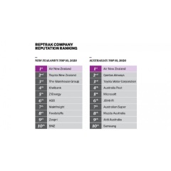 [p"In times of crisis and uncertainty, having a consistently excellent reputation - as Air New Zealand does - is invaluable. Based on more than 20 years of providing data and actionable insights to companies globally we know people will continue to support companies that have stronger reputations"[/p]Further commentary on the RepTrak Australia and New Zealand rankings is available here.