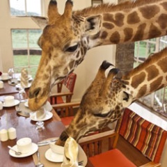 Funny videos on the casino’s Cool Facts About Giraffe’s page include one where giraffes enjoy breakfast at Giraffe Hotel. In another, a giraffe walks casually through a South African Restaurant. In one of the most heartwarming videos, a cheeky little orphaned giraffe is watched over by his friend, Hunter the dog. Perhaps the funniest video is one that shows tall, lanky giraffes bending over to drink.