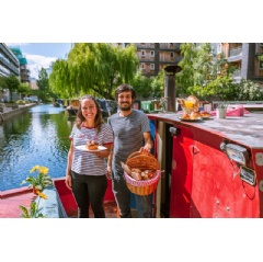 They started by supplying their neighbours on London’s canals with fresh bread and pastries, but as word spread and the queue outside their houseboat grew larger, they started a delivery service. They now have four drivers who deliver all across London on their motorbikes.