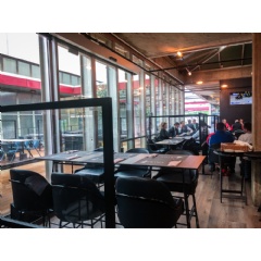 Social Windows builds transparent, lightweight panels with plexiglass, wood and metal – elevated and stabilized by attached stands – to be positioned between tables, chairs or benches. The “social windows” are non-intrusive, easy to clean, and designed to fit seamlessly in restaurant environments. In addition to keeping guests and staff safe, they also help reduce dining room noise.