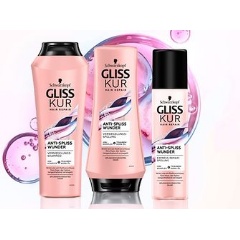 Experience a technological breakthrough in hair care with the new Gliss Kur Split Hair Miracle line. With an innovative formula featuring grape seed oil and an ionic complex, Gliss Kur Split Hair Miracle provides a long-lasting seal for split ends – like a zipper for your hair.