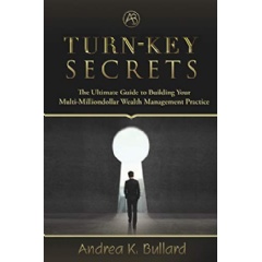 In “Turn-Key Secrets,” the author Andrea Bullard divulges the 4 essential Pillars to building a multi-million dollar Wealth Management practice. She shares strategies to substantially reduce work hours and related stress and at the same time significantly increase net income.