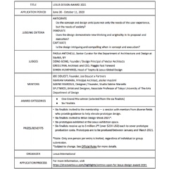 CALL FOR ENTRIES TO THE LEXUS DESIGN AWARD 2021 COMPETITION (see related image)