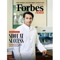 With a global health crisis raging, it is no surprise that pharma entrepreneurs fared well. The fortune of vaccine billionaire Cyrus Poonawalla (No. 6), whose privately held Serum Institute of India—led by his son Adar—has joined the race to produce Covid-19 vaccines, was up 26% to $11.5 billion. Adar, who is CEO of Serum Institute of India, is featured on the cover of the October issue of Forbes Asia.