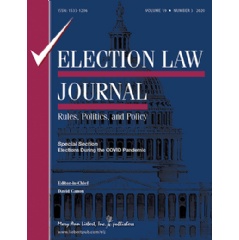 Election Law Journal is an authoritative peer-reviewed journal published quarterly online with open access options and in print that provides global, interdisciplinary coverage of election law, policy, and administration. Led by Editor-in-Chief David Canon, University of Wisconsin, the Journal covers the field of election law for practicing attorneys, election administrators, political professionals, legal scholars, and social scientists, and covers election design and reform on the federal, state, and local levels. Complete tables of contents and a sample issue are available on the Election Law Journal website.