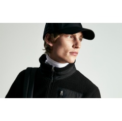 Pile is a key texture for the season, like the pile zip-up vest in either off-white or olive green with a nylon chest pocket and neck trim. It’s a versatile piece that adds contrast and warmth to winter layering. There’s also a pile zip-up jacket, as well as a pile half-zip jacket, all with a turtleneck to help keep out the cold.
